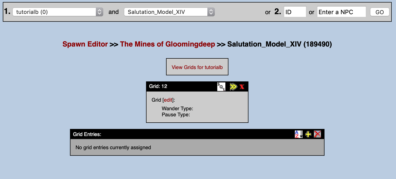 Once you click the Add Spawnpoint button, you are redirected to a page that allows you to review the settings of the Spawnpoint. Notice that the Pathgrid field is hypertext. If you follow this link, you are able to manipulate the pathing grid information for this Spawnpoint.